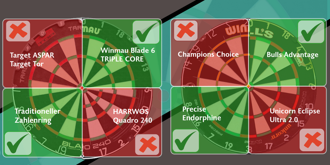 Winmau Blade 6 Serie, Precise Endorphine, Bulls Advantage, alle Dartboards mit klasischen Zahlenringen und Standardmaßen